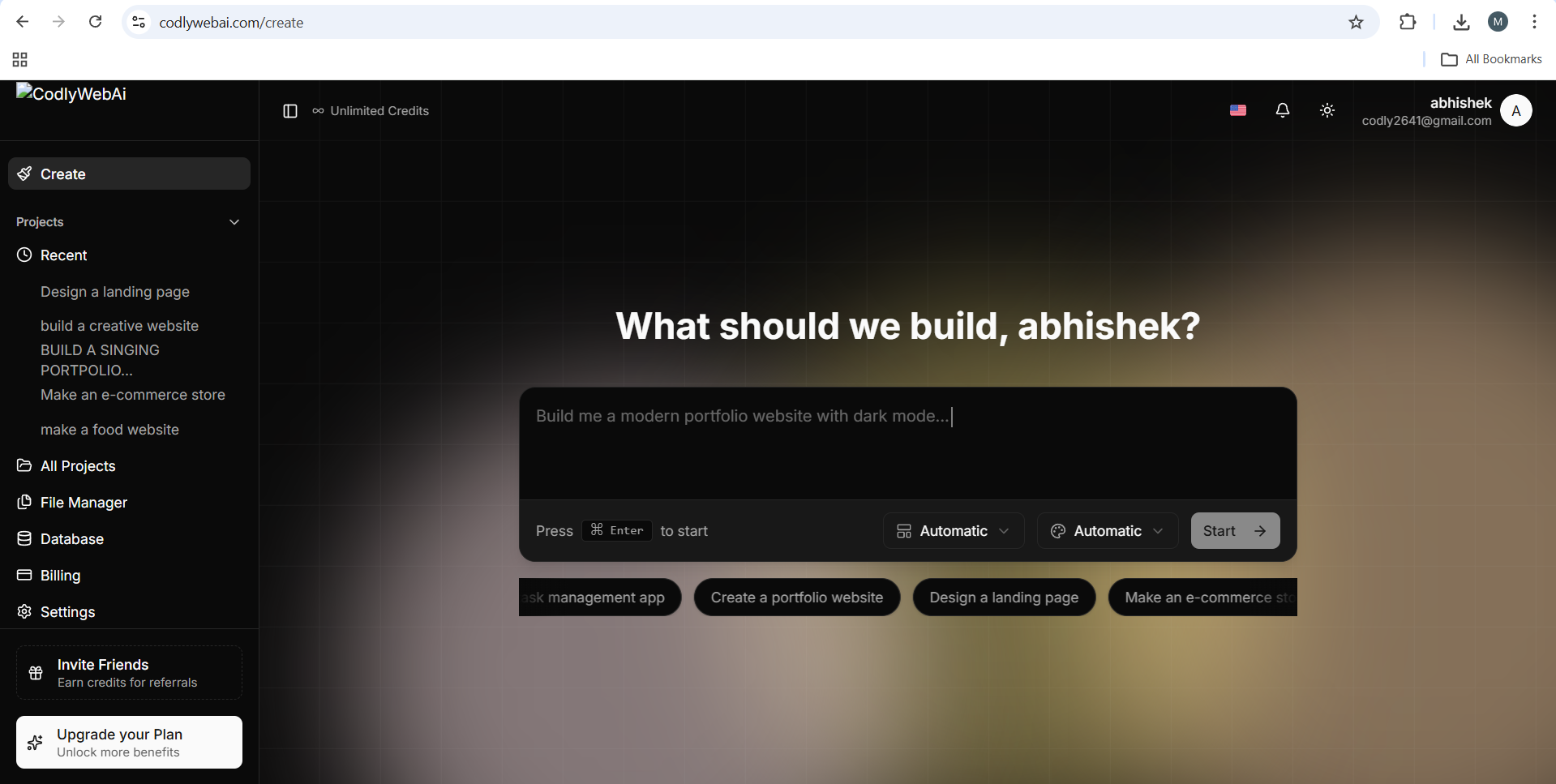 CodlyWeb AI is an intelligent platform that allows users to create, host, and manage websites automatically. Using AI-driven templates and automation, users can build fully functional websites without coding. It integrates advanced features like webhook support, automated hosting, and complete admin panel management for seamless operation.
