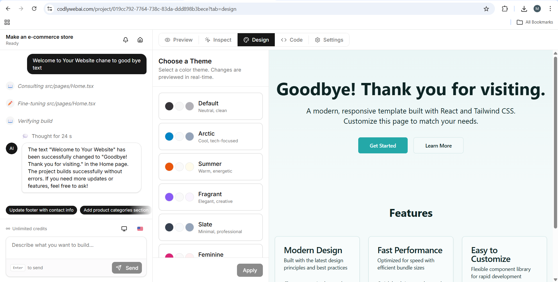 AI-Powered Website Generation: Users can generate websites automatically by providing prompts or selecting templates.